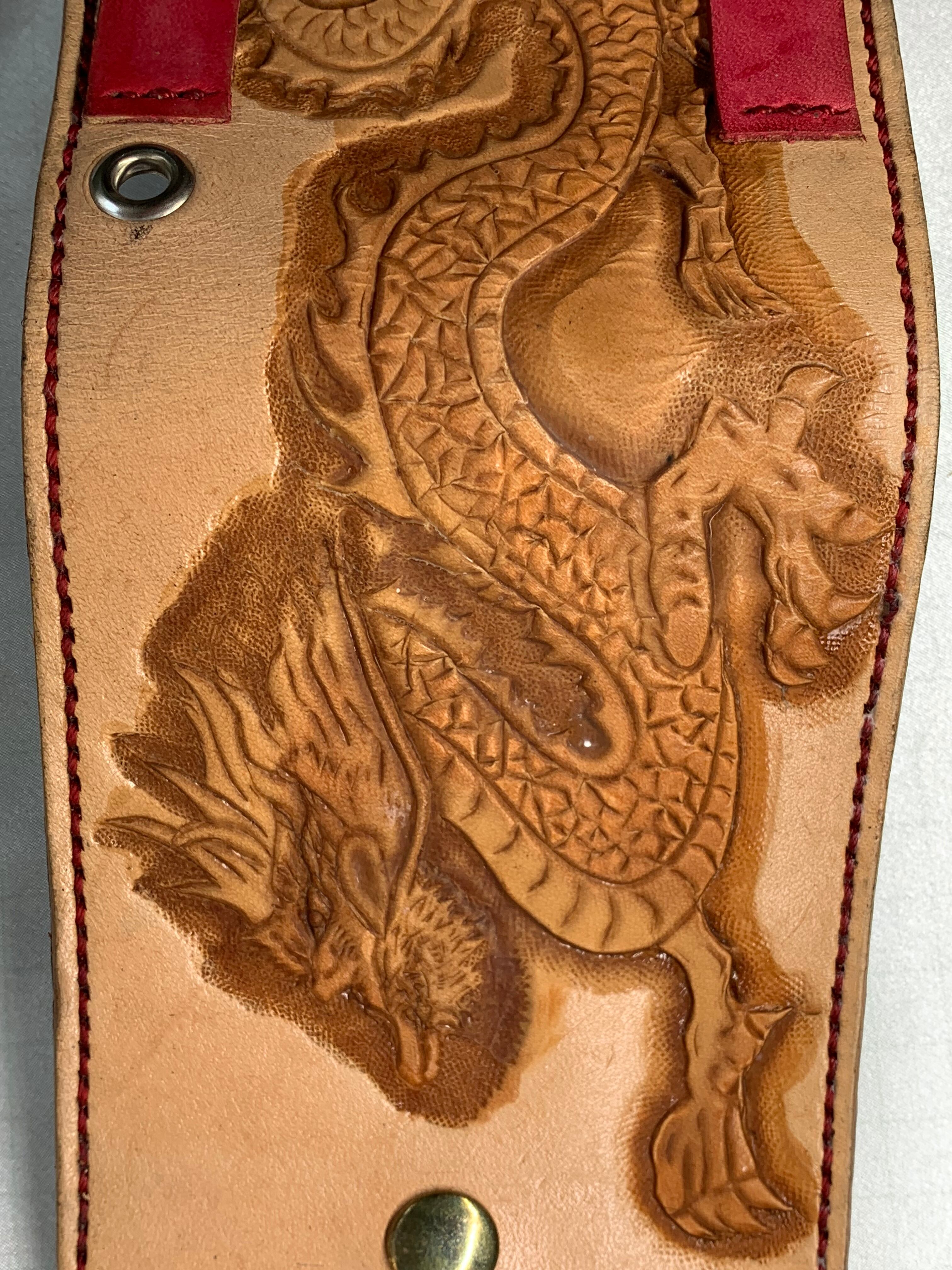 牛革に龍を浮き上がらせています。